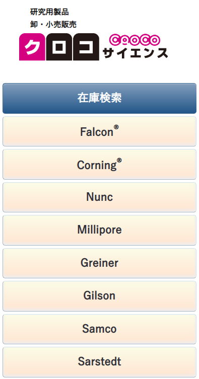 ![]() これまで弊社ホームページはスマートフォン専用のページがなかったため、スマートフォンでは画面が小さくなってしまい、とても見にくい状態でした。そこでスマートフォンでも見やすいようにスマートフォン専用ページを作りしました。 スマートフォン用のホームページでは左の画像のように弊社在庫検索に特化させましたので、どこでも弊社在庫が調べやすくなりました。 またスマートフォン専用ページのアドレスはパソコン用アドレスと同じで、https://croco-sci.co.jpです。「クロコサイエンス」で検索していただければ見つかると思いますので、是非ご利用ください。 |